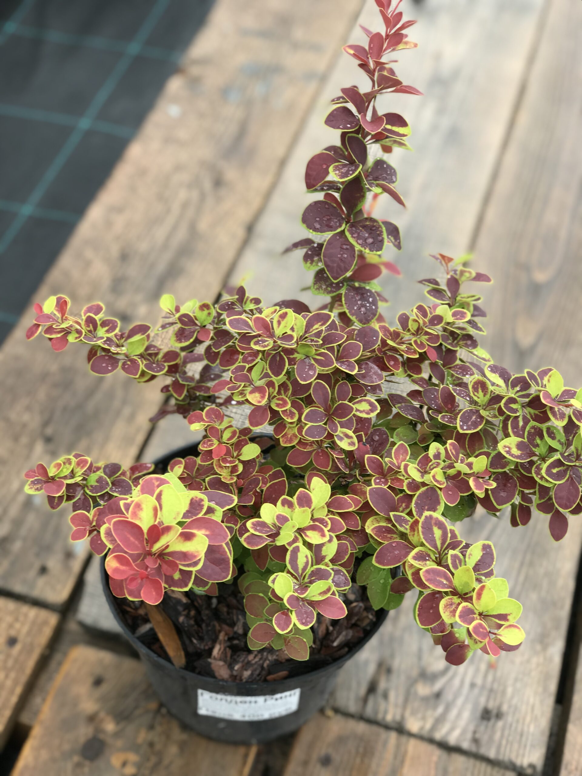 Барбарис тунберга  Голден Ринг (Berberis thunbergii Golden Ring) — раскидистый колючий лиственный кустарник. Высота взрослого растения — до 2,5м, диаметр кроны до 3м. На побегах имеются шипы. Листья овальные или почти округлые, длиной до 3-х см., летом по цвету — фиолетово-красные с жёлтой каймой, осенью — окрашиваются в насыщенно-красные тона. Подобные мутации очень часто возникают у сорта Atropurpurea, на который Golden Ring похож во всем остальном. Растение цветёт в конце мая — начале июня, цветки жёлто-красные. Плоды — красные, блестящие ягоды — созревают в сентябре.